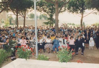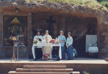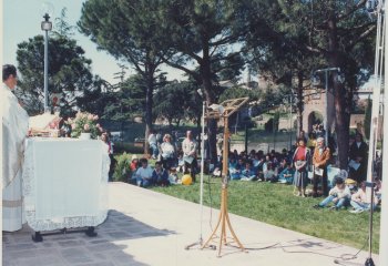 Il Santuario della Madonna del Divino Amore � dotato di uno spazio sacro per le celebrazioni all'aperto: un boschetto di pini che fu messo a dimora durante l'Anno Santo 1975, in ricordo della Prima Tendopoli Mariana. Recentemente � stato arricchito di una pregiata ceramica, che era posta sulla Torre del Primo Miracolo raffigurante la Madonna del Divino Amore, e di un altare per la celebrazione della S. Messa. L'ambiente evidenzia la bellezza della creazione che � riflesso della bellezza infinita del Creatore.