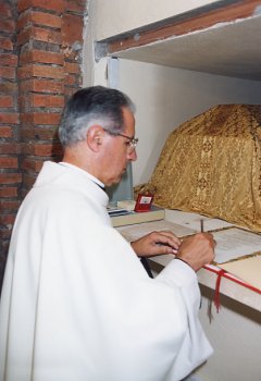 La salma di Don Umberto Terenzi riposa ai piedi della Madonna. Vi fu tumulata l�8 ottobre 1978 dopo quattro anni di permanenza nella tomba dei parroci al cimitero del Verano.