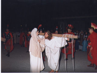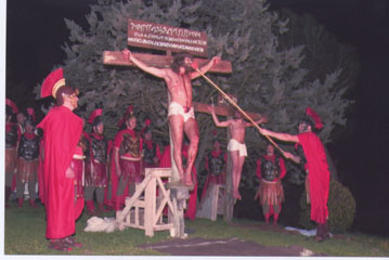 Dal 1982, la Domenica delle Palme ed il Venerd� Santo alle ore 20,30, al Santuario si tiene la SACRA RAPPRESENTAZIONE DELLA VIA CRUCIS ISPIRATA ALLA SINDONE. Circa 200 personaggi nei costumi dell'epoca, fanno rivivere le fasi salienti della Passione, Morte e Resurrezione del Signore in uno scenario straordinario sia dentro che fuori le mura di Caste di Leva. La Sindone rivela molti aspetti interessanti della Passione di Ges�.