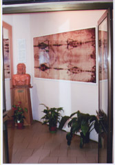 Nello stesso complesso della Rassegna Mariana, in locali adiacenti, troviamo una significativa mostra sulla Sacra Sindone. Il celebre lenzuolo funebre, che avvolse il corpo di Cristo, ha rivelato particolari sconvolgenti sulla Passione e morte del Figlio di Dio. Le immagini aiutano a capire l�impressionante sofferenza di Ges�.