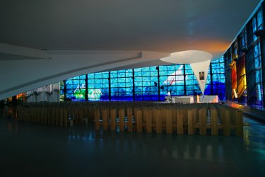 Il nuovo Santuario è la casa della luce, un ineguagliabile spazio mistico in cui si alternano i colori più smaglianti e più tenui, più soffusi e più squillanti grazie al magico potere delle grandi pareti in vetro antico soffiato legate a piombo, che hanno una estensione di circa 1.300 metri quadrati.